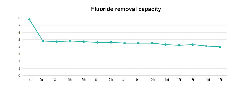 - Test Conditions: Raw water fluoride content = 7.8ppm (far exceeding safe limits), pH adjusted to 6-6.5, flow rate = 90ml/h (simulating 3m³ of water treated per hour per ton of filter media).