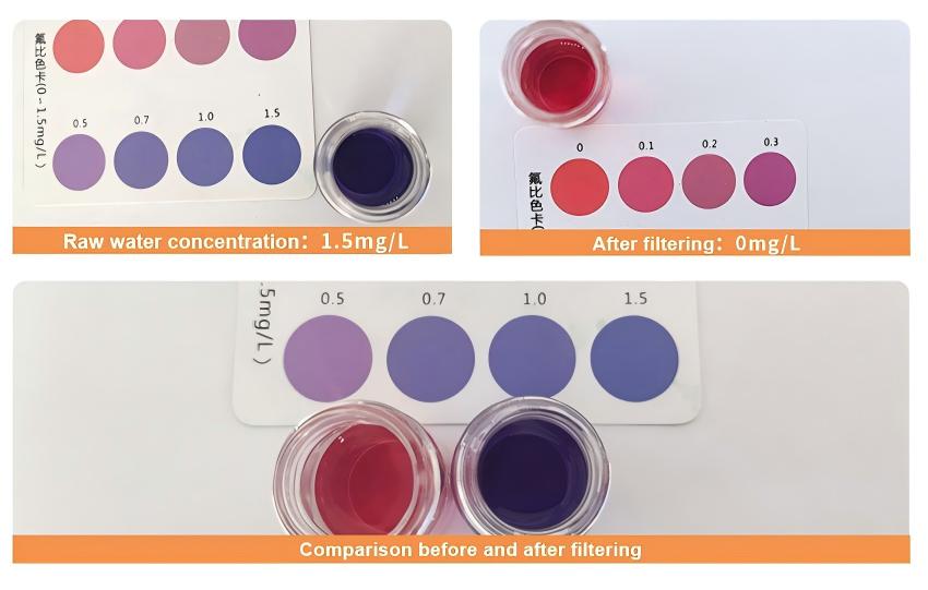 - For 5L of water with 5.0mg/L fluoride: Removal rate reaches 90.8%, effluent = 0.46mg/L.