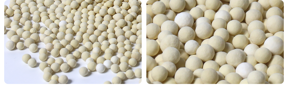 Using a low-temperature (<580 °C) sintering process, natural vitamin C powder is fused into food-grade clay, forming porous ceramic spheres.